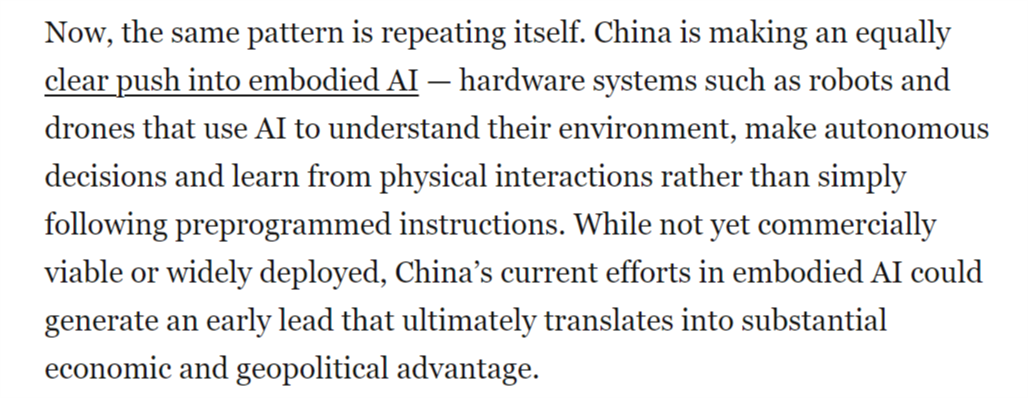 本地时间1月30日,文章指出,整个2024年,无人机等硬件系统操纵AI、自从决策并从物理交互中进修,